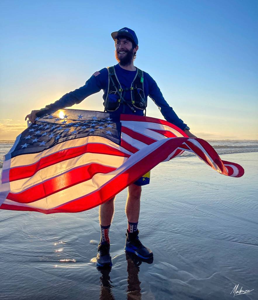 He completed the last mile to the Pacific Ocean on his run across America that began April 25.