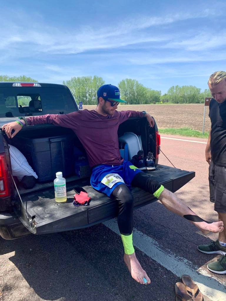 The most challenging leg was in South Dakota, where his ankle tendonitis was so debilitating that he couldn’t move it up or down without sharp pain. “The idea of putting my heel down felt impossible,” he said.