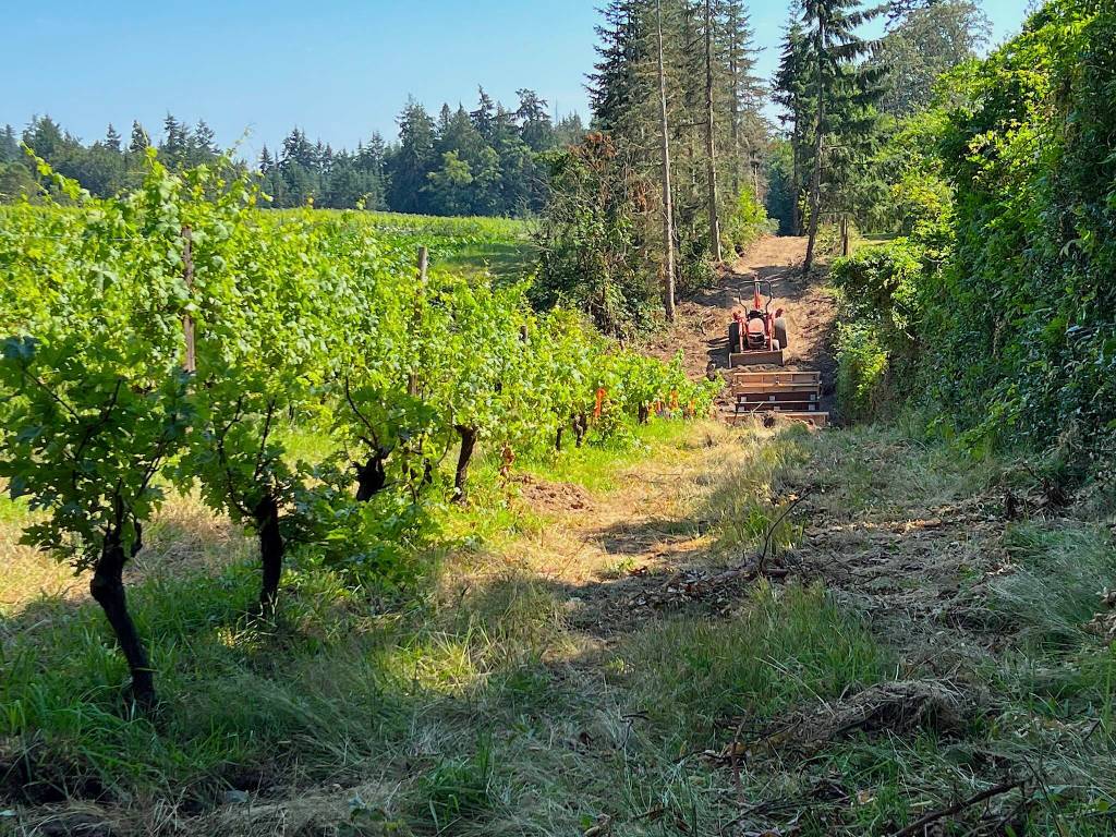 The Farm Trail is being built upon an old unused county road that runs alongside the city-owned Morales Farm, Butler Greens, the Bentryn and Suyematsu Farms aka Bainbridge Farms, Bainbridge Vineyard Winery and the Grace Church property. Perennial Vintners is in the predicament of being located between public farming spaces.