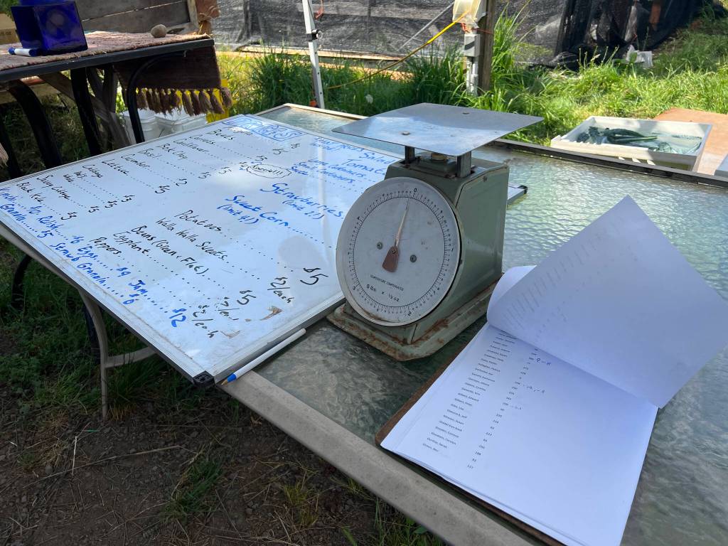 The CSA (community-supported agriculture) farm, which grows biodynamic produce, runs a flexible account model where members shop from the tables under the tent or from inside the greenhouse and log what they’ve selected onto a list to be accounted for later. It’s a simple process that people like.