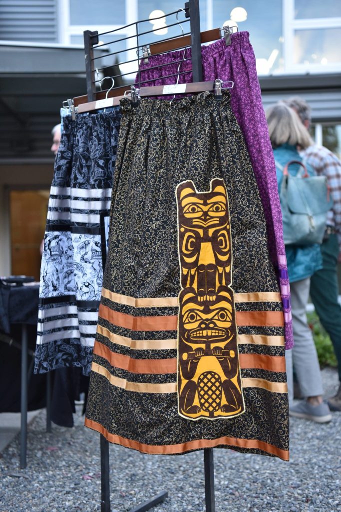 During the evening event, attendees spoke with tribal elders about their way of life, sampled fry bread tacos made by chef Shelly Price and spoke with artisans who made ribbon skirts, drums, baskets, woven cedar and fiber textiles, and cedar potlatch hats. Several artisans sold items, including Kippie Joe, a Suquamish tribal member who makes potlatch hats from cedar bark. She was making one during the gathering.