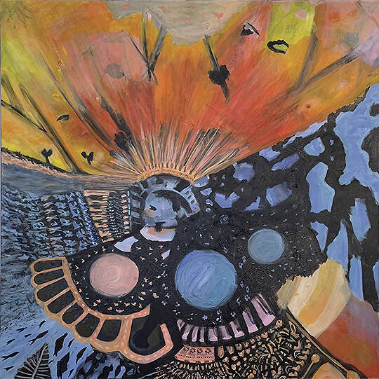 Cohen has lived all over and has done many types of artwork, but in 2015 she moved to a private forest on the Hood Canal in Seabeck. Living in the middle of nowhere on seven acres with a sunroom as a studio and no neighbors in view, she began to really live her dream. “My art has matured, I have a patience I didn’t have before. I do acrylic on canvas now. Nothing tricky or techie. Just me and paints and brushes and canvas, ” she said.