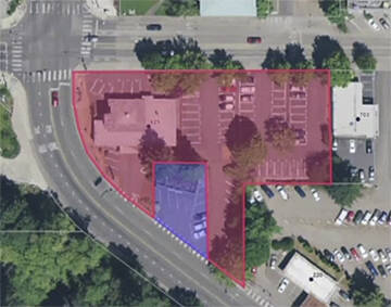 The Bainbridge police station site in light red, with the ‘notch’ in purple. Courtesy Image