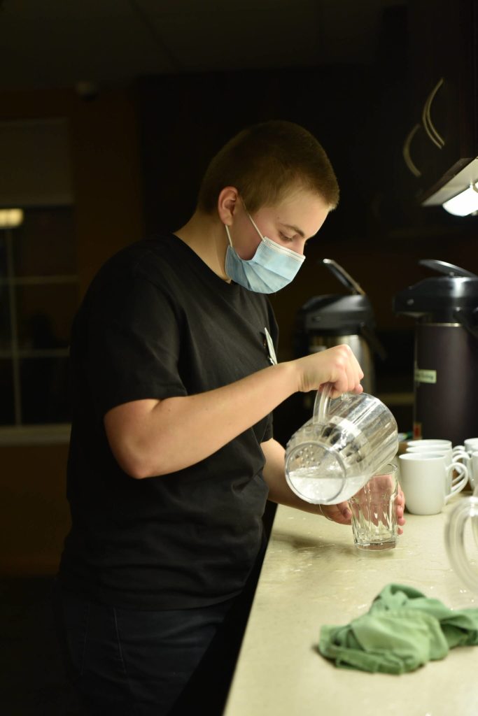 After finishing mandatory online training, students must receive a state food handlers certificate. Then they participate in a short period of job shadowing before actually stepping into their role where they learn about the company, how to communicate with their supervisors, and how to interact with residents. “It’s a health care industry job, so there’s a lot of paperwork,” Rohrbach said, adding they are trying to hire eight more servers.