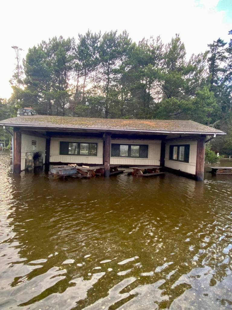 The picnic shelter at Fay Bainbridge Park is flooded by the King Tides Dec. 27.