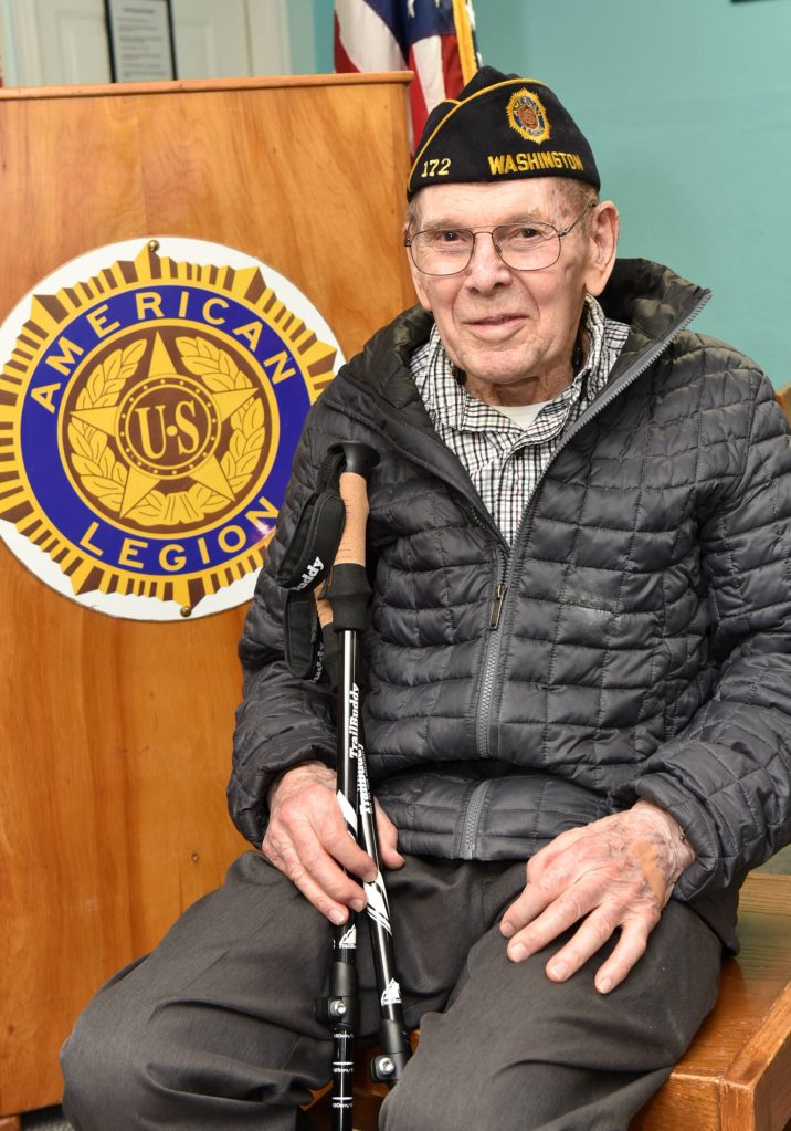 Donald Young talked about the irony of being stationed in Greenland during the Korean War after he accepted a 70-year pin as a member of the American Legion April 4.