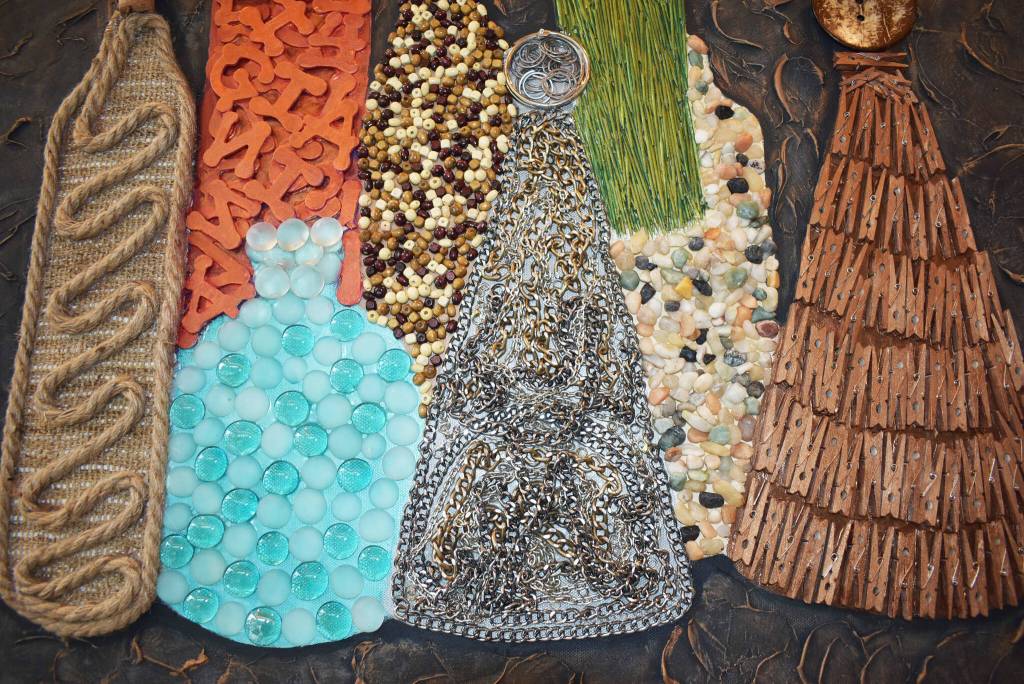 Romo has a one-of-a-kind technique on canvas. “She is really well-known for texture and color and found objects,” Pecora said. “She is finishing one now where she takes things like toothpicks, screws, forks and rice, and gives the paintings depth.”
