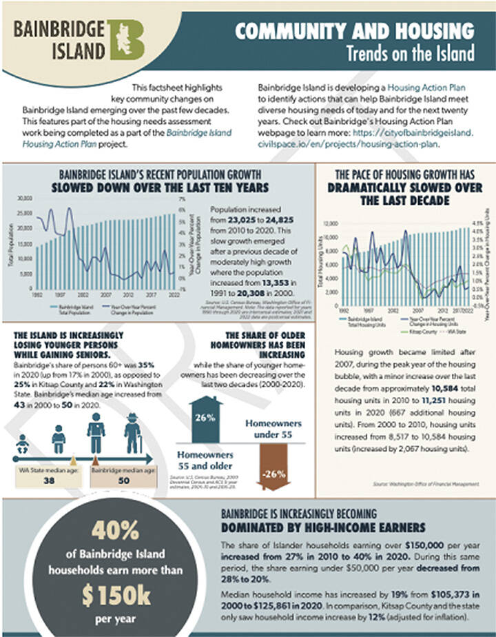 • Strategy development: Develop and evaluate strategies, informed by data, engagement, and priorities. Develop strategies and actions designed to inclusively meet the housing needs of Bainbridge communities and workers.