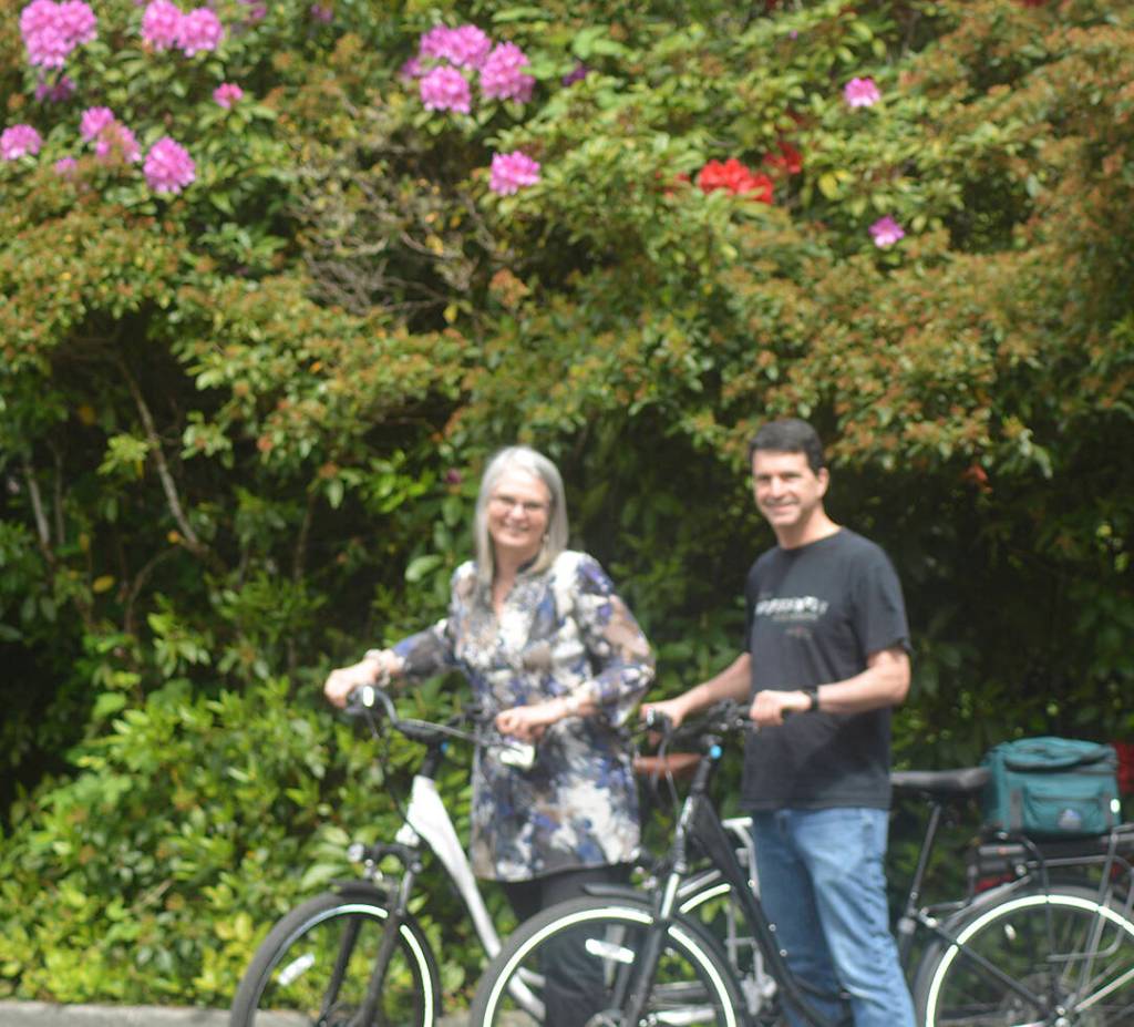 They have two electric bikes, two traditional bikes and one electric scooter. “We like biking to Lynwood Center or down to Manitou Beach and up to Rolling Bay,” she said. “I look forward to better bike infrastructure to both places in coming years.”