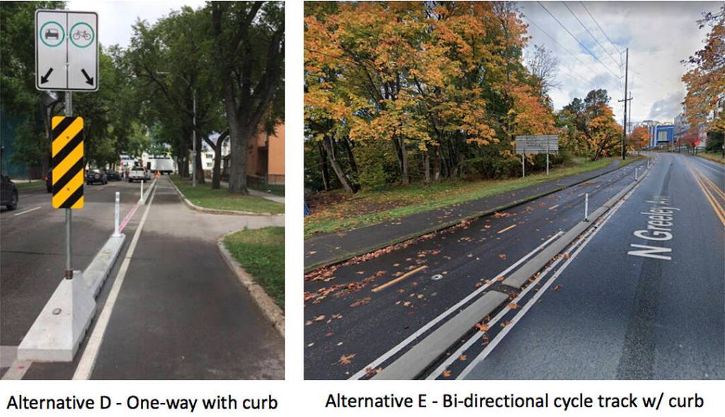 Lisa Macchio said she’s been cycling the area for 29 years and separating the trails on both sides of the road would be safest. She mentioned while commuting she is “huffing and puffing super slow” going uphill, while on the other side cyclists are zipping down at 30 mph. “I don’t want them next to me and then have cars” too, she said. “It’s so much safer to keep those different speeds separated.”