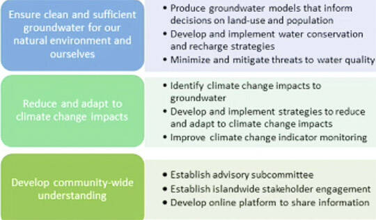 •Reduce and adapt to climate change; identify impacts to groundwater; develop strategies to reduce climate impacts; and improve indicator monitoring.