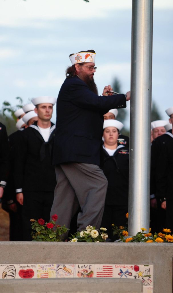 As in years past, a small crowd made up of local military, residents and fire department staff visited the memorial Sept. 11 to pay their respects to the nearly 3,000 lost lives and watch the annual Sunset Flag Raising Ceremony.