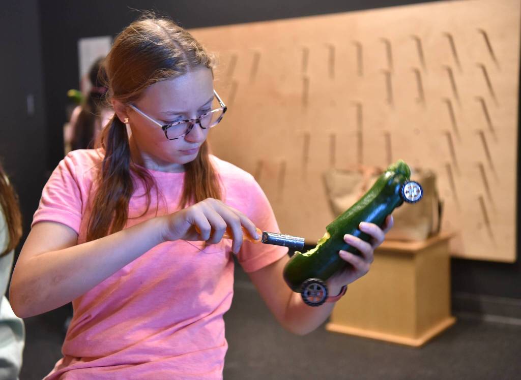 A number of children turned zucchinis into racing vehicles at the Kids Discovery Museum on Bainbridge Island Oct. 6.