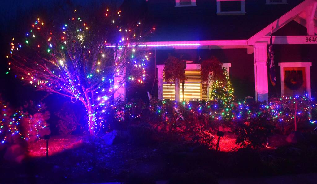 The Rhododendron Apartments have holiday figures showcased on the road.