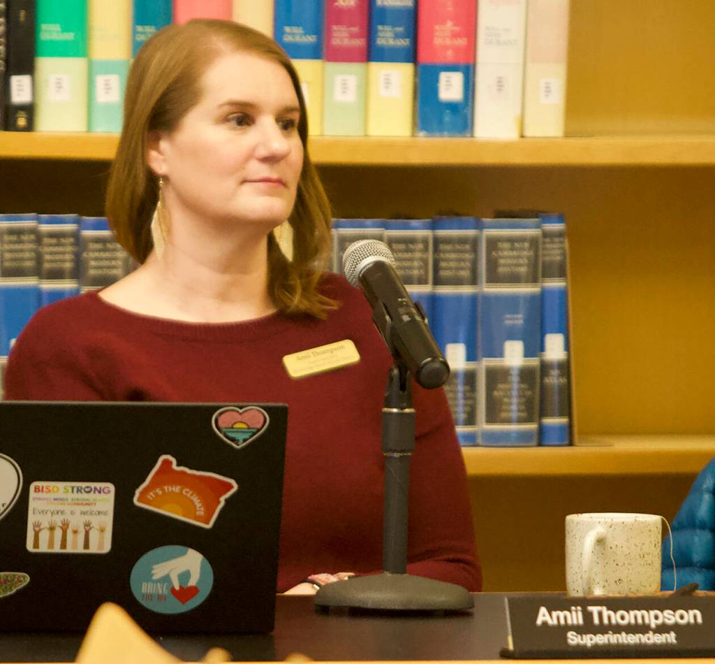 The meeting at the BI high school library was presentation-heavy, with several check-ins on various ongoing projects: updates to facilities, the future of school buildings and the WIAA classification, or sports division reassignment.