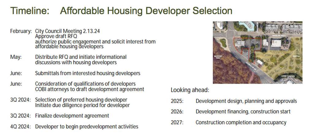 The City Council voted Feb. 13 to allow city manager Blair King to seek statements of qualifications to partner with a developer on building affordable housing at the former police station on Winslow Way East.