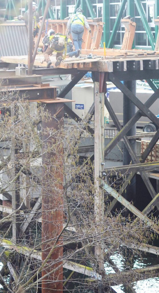 Demolition of the old overhead passenger walkway is underway as the new $33 million route opened Feb. 5 on Bainbridge Island.