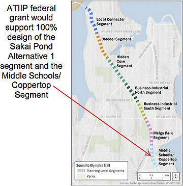 The money would pay for design of the Sakai Pond and Coppertop segments of the Sound to Olympics Trail. It will look at how to pay for the $500,000 local portion if the grant is received.