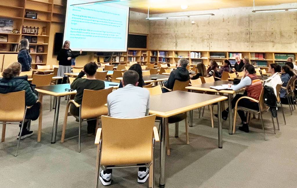 Led by Thompson and financial director Kim Knight, district leaders walked about 35 attendees through its recent budget history and next steps at the meeting.
