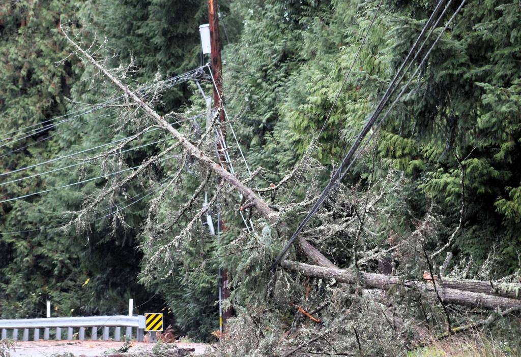 Trees and power poles-lines down, along with power outages, caused some schools and roads in Kitsap County to be closed Nov. 20.