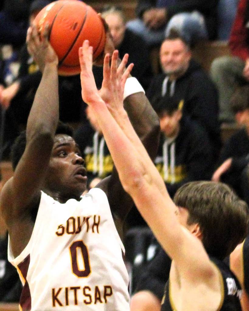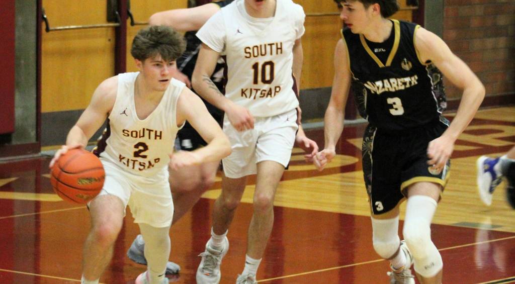 At least for the first night, his boys got business done. A 20-point night for senior Anthony Flashey, including a trio of threes, helped the South Kitsap Wolves hold off the international visitors from Nazareth College in Australia for an opening night 62-56 win.