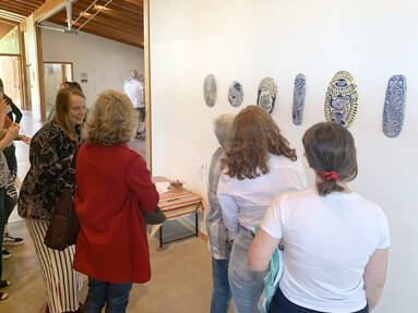 Isobel Coney, a ceramic and textile artist in AHB’s 2023 cohort, is originally from a rural farming community in the United Kingdom. Coney used her funds to purchase a digital kiln, which has streamlined her ceramic art production and allowed her to experiment with new glazes. She takes inspiration from the natural environment and duality of her upbringing in the U.K. and her life on BI, she said. Tea is a constant theme.