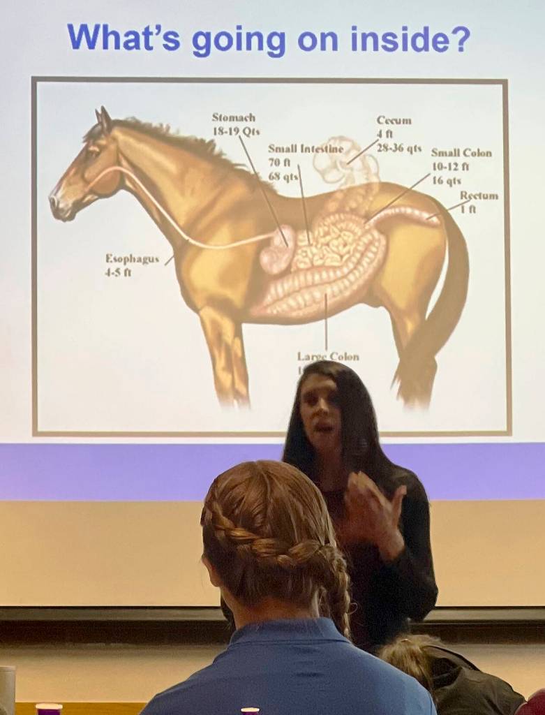 It may have sounded like a pun, but CHS Northwest equine nutrition consultant Crystal White was serious when talking at a Bainbridge Island Pony Club seminar Jan. 11.