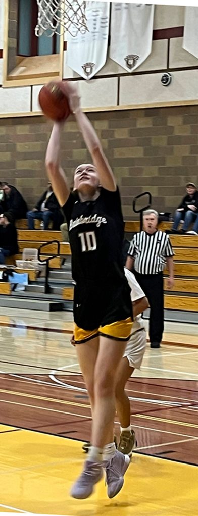 Bainbridge senior Maia Greiwe goes up for a layup in a 69-36 win against the Buccaneers at Kingston High School Jan. 31.
