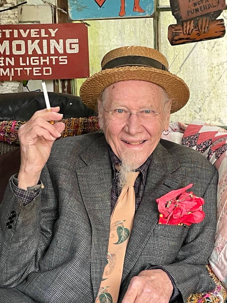 Along with Tim’s talent for growing beautiful flowers, he was an avid collector of antiques and unusual trinkets. He often had “pop-up” sales at his home or gifted his “special finds” to family and friends. One of the highlights of Tim’s year was volunteering for the garden section at the Bainbridge Rotary Auction and Rummage sale. He especially enjoyed perusing the “LOO” (Land of Opportunity,) an area of free stuff available to volunteers during set up week before the sale. His garden and home were full of his many “finds” including a “forest” of colorful patio umbrellas!
