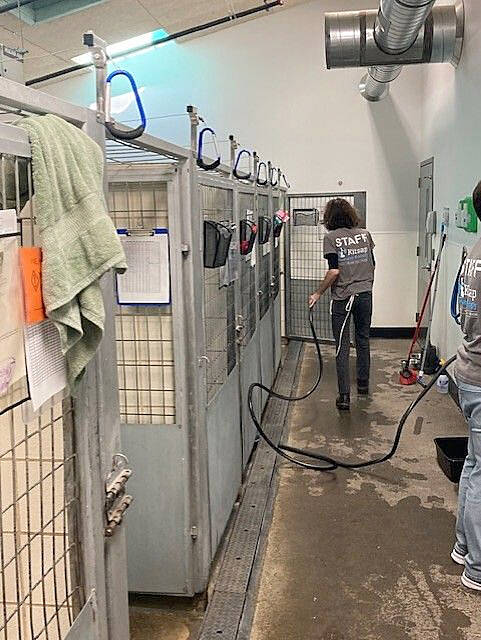 “The old holding area’s cement floors and older kennels are not very welcoming. Barks echo off the walls. It gets kind of loud in there,” Bush said.