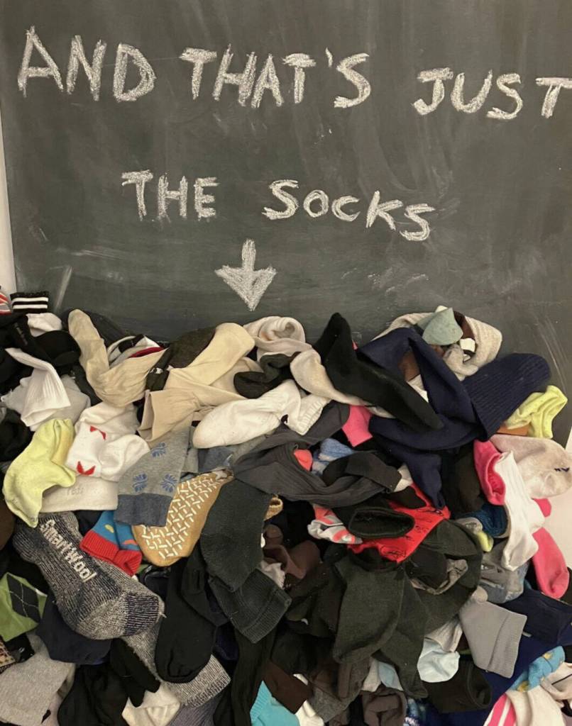 Since January, the family has recycled 172 small electronics (for reclamation), 2,193 socks and undergarments (to become insulation), 1,802 books (for K-12 students in Nevada), 90 soccer cleats and 40 soccer balls (for young soccer players in Colombia), 48 boxes of women’s clothing (for restoration and reuse), about 15 dog leashes and collars (for a dog rescue in South Africa), dozens of bike parts (for Bike Works), and two carloads of baby supplies, like carseats, toys, blankets and more (for low-income families in West Seattle).