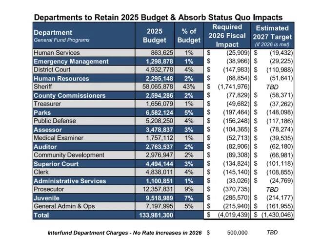 In mid-September, the Kitsap County Board of Commissioners received presentations from county departments about their proposed budgets, as part of an estimated $8 million countywide shortfall, which the county aims to reduce to $4 million by implementing a 3% reduction across all departments for fiscal year 2026.