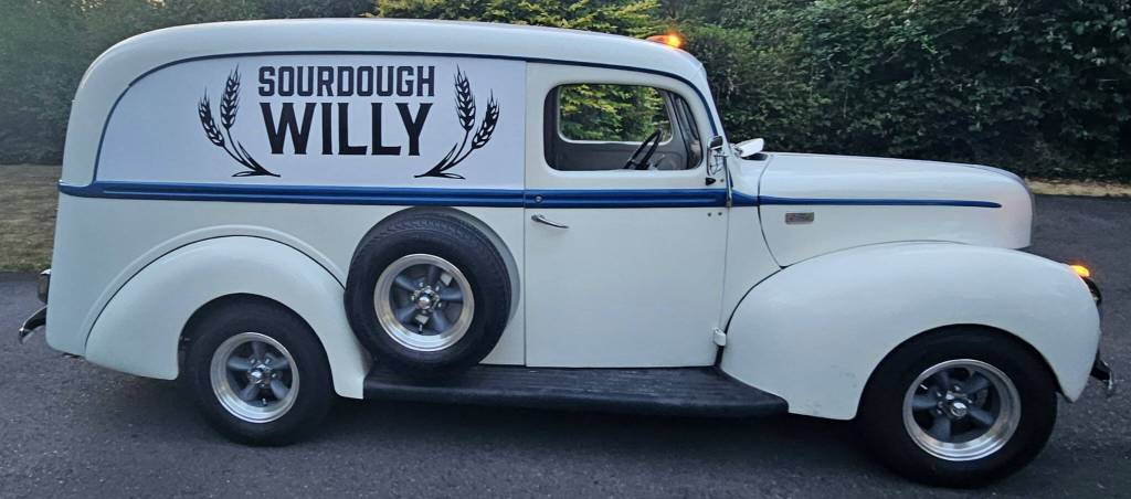 Grant tossed, floured, sauced, added toppings to, and baked 60 cheese and pepperoni pizzas for 4:30 p.m. delivery to Mary’s Place Feb. 9. The process took about three hours, including an hour or so of transit. Grant loaded the pizzas into his 1941 panel delivery truck at That’s A Some Pizza in Coppertop Park, boarded the ferry, and delivered the pizzas to the shelter in Denny Triangle. Grant repeated the process with another 25 pizzas Feb. 10, delivered to Bremerton’s Salvation Army.