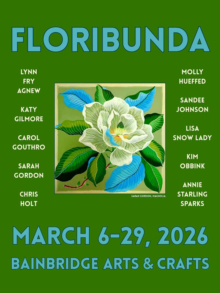 As the first intrepid bulbs and blossoms awaken in our local landscape, Bainbridge Arts & Crafts will fast-forward spring with its March exhibition, “Floribunda.” From March 6-29, 11 local artists share their unique interpretations of floral abundance, some naturalistic and some abstract, transforming the gallery into a garden of imagination, a news release says.