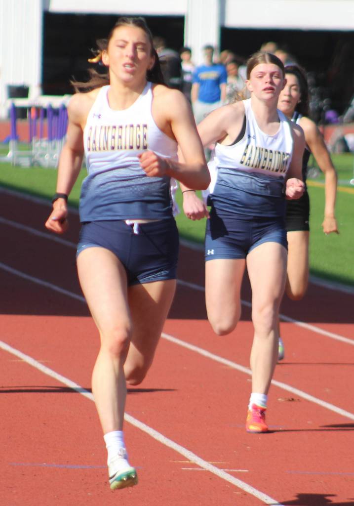 Bainbridge Spartans Cate Torrell and Ema Delecki placed first and second, respectively, in the girls 100-meters.