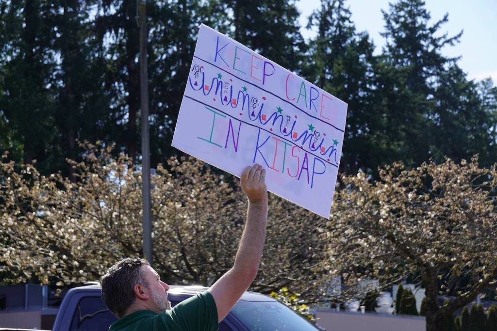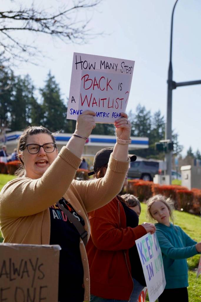 Roughly 50 community members held a rally outside of St. Michael Medical Center in Silverdale March 27 to protest the upcoming closure of its pediatric rehabilitation clinic, which is scheduled to shut its doors April 24.
