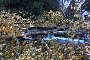 Two cars were badly damaged but no one was hurt when a large tree was toppled in Monday’s…