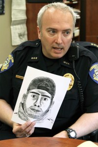 Bainbridge Police Chief Matthew Hamner holds a police sketch of a suspected serial burglar during a press conference Wednesday.