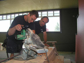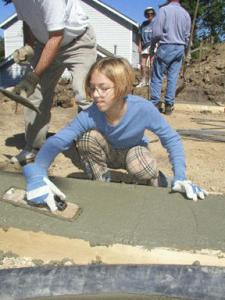 Kathy Duprey kneels by what will be the southwest wall of her new home. With a stick, she…