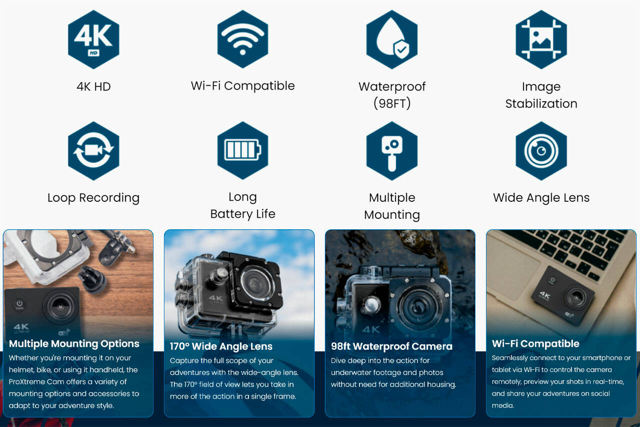 - Video Quality: Pro Xtreme Cam promises to deliver quality footage and remarkable video resolutions. It features 4K capabilities, meaning it can capture each scene detail.