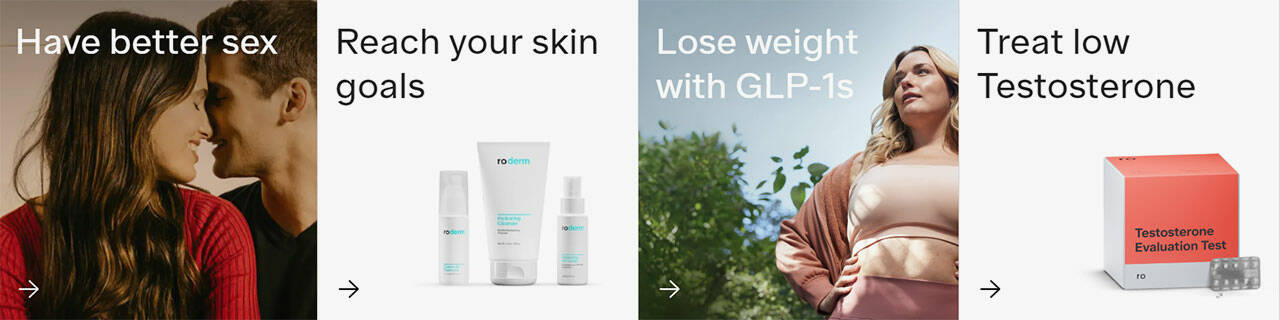 Regarding skin health, Ro introduces custom prescription skincare treatments designed to cater to individual skin types and targeted concerns. Whether eczema flare-ups or routine skin nourishment, Ro’s offerings strive to enhance and maintain dermal wellness.