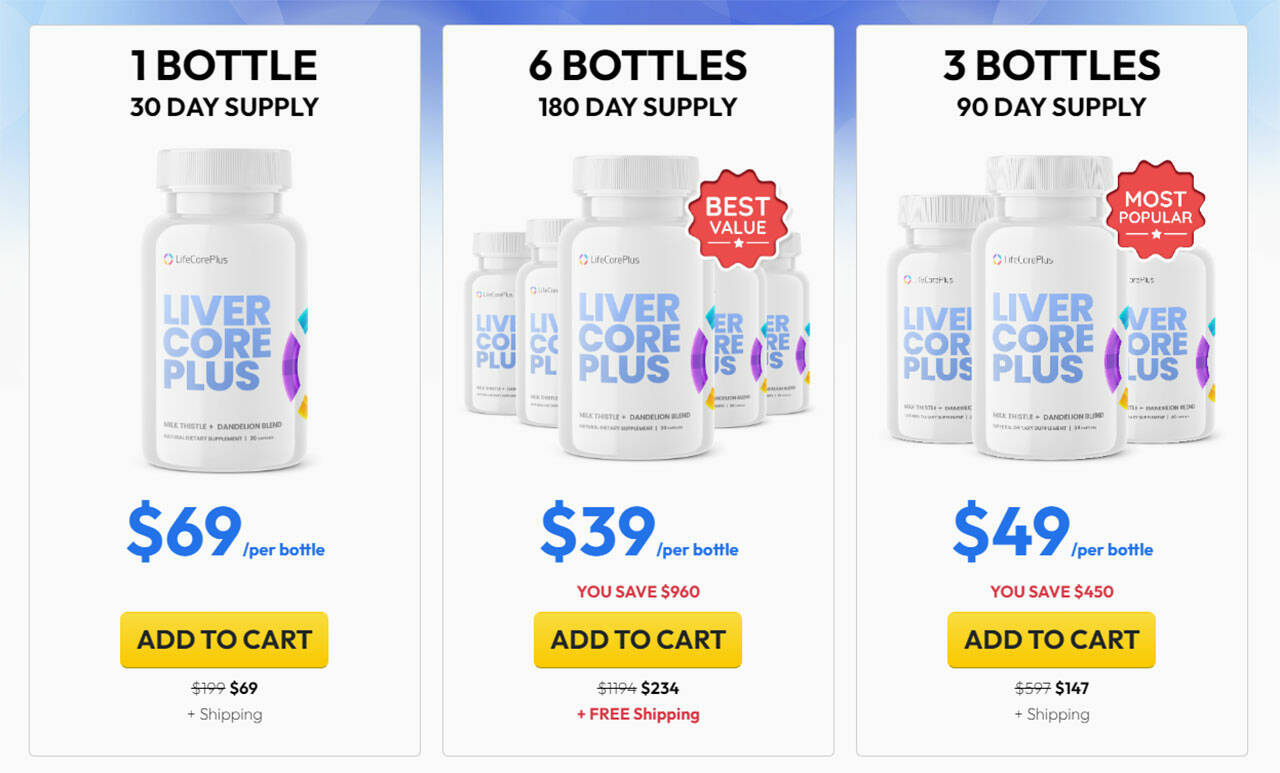 - Order a single bottle of Liver Core Plus and pay $69 per bottle. That’s a $130 saving offer at the regular retail price of $199.