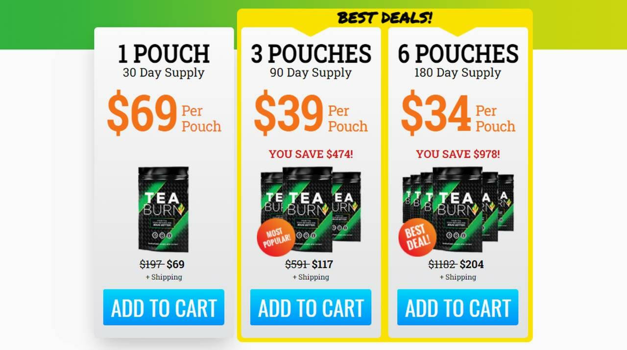 You can buy Tea Burn from the official website at discounted rates as well. The makers offer discounts on 3-pack and 6-pack orders. If you buy three packs of the Tea Burn supplement at once, you get each pouch at only $39, and if you buy a 6-pack together, you get each at $34 only.