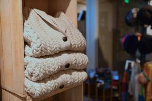 Set back from the street in the Orchard Plaza on Winslow Way, a handmade wool coat and cap…