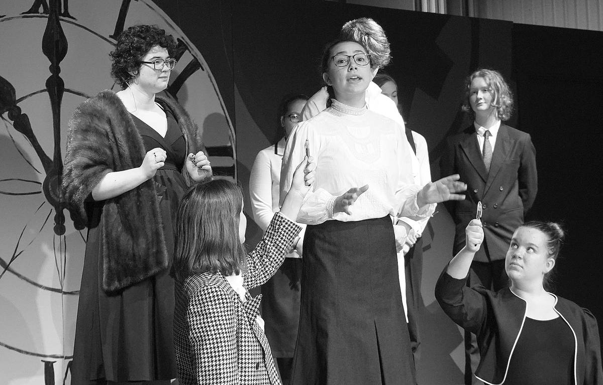 Luciano Marano | Bainbridge Island Review - The Bainbridge High School production of “Radium Girls” will be staged at Woodward Middle School as the campus theater has been demolished as part of a massive facility upgrade.                                 Luciano Marano | Bainbridge Island Review - The cast of the upcoming Bainbridge High School production of “Radium Girls” works through rehearsal earlier this week.