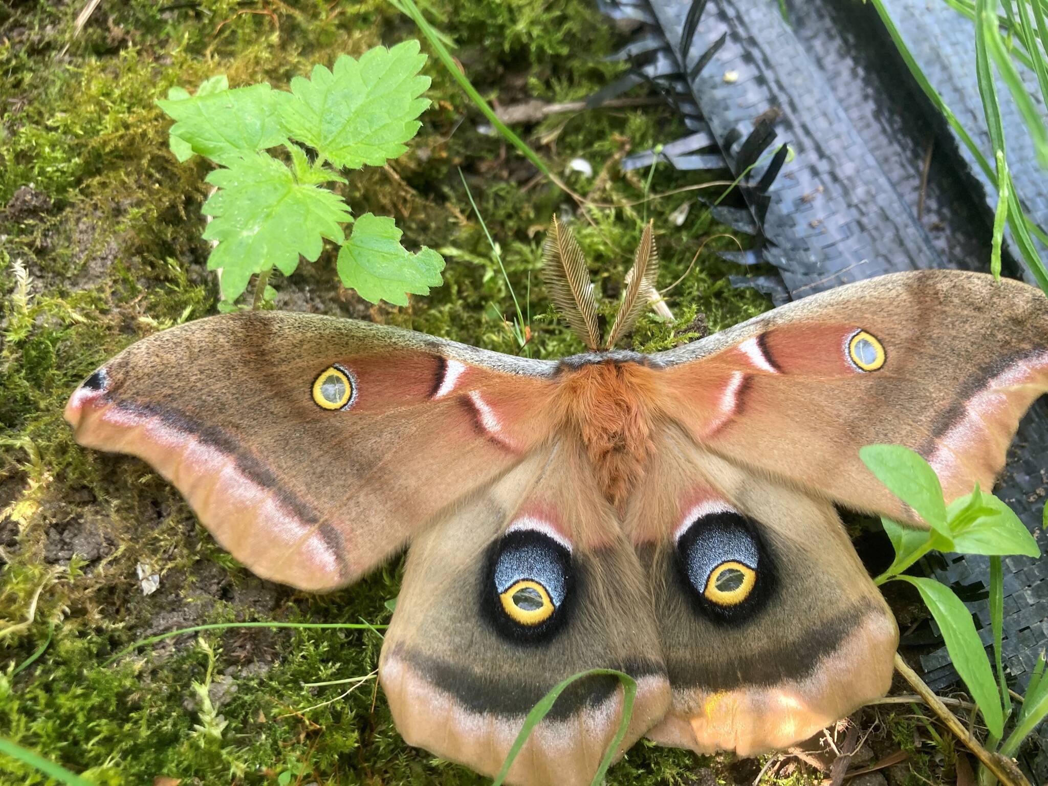 A polyphemus moth measuring about 6 inches across was detected in the meadow by Haley Wiggins.