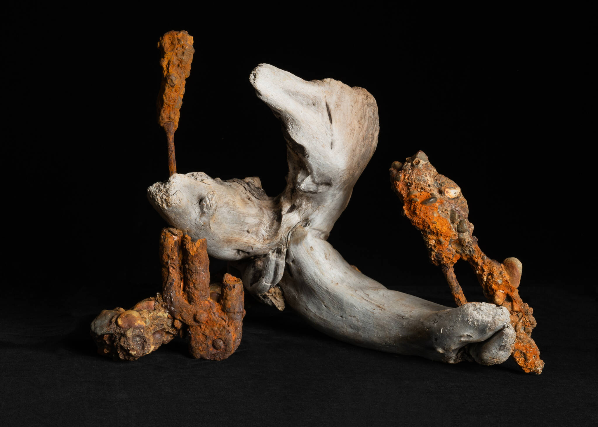 Now in his second year as an AHB grant recipient, Sprung makes abstract sculptures that evoke moments of destruction. He began as a painter, sometimes working collaboratively, and shifted to sculpture when he became fascinated by the shapes of trees that had been struck by lightning. On BI, he is inspired by the chemical contamination at the Eagle Harbor Superfund site.