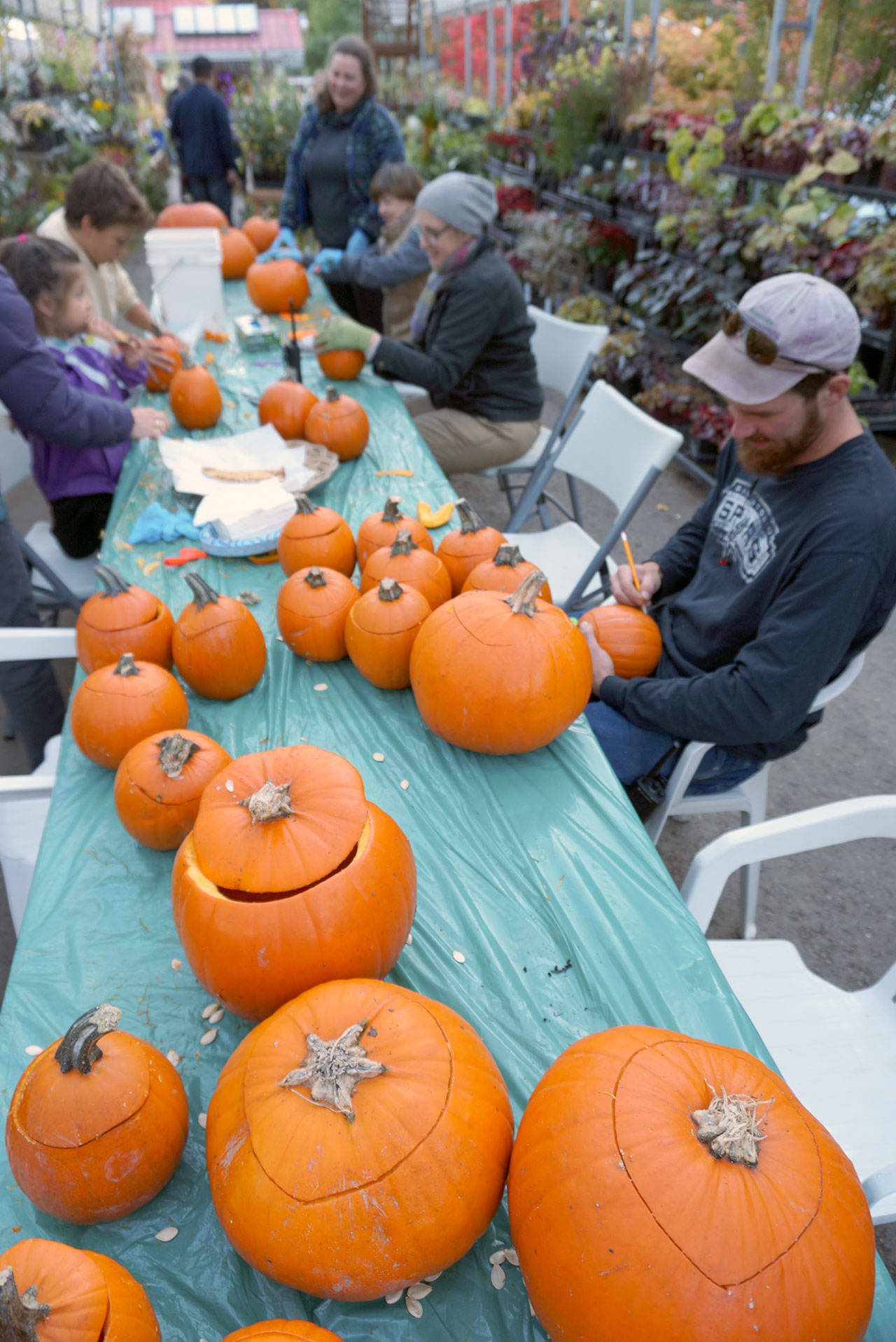 Volunteers gathered at Bainbridge Gardens last week to begin carving the many, many gorgeous gourds to be displayed at this year’s Pumpkin Walk.