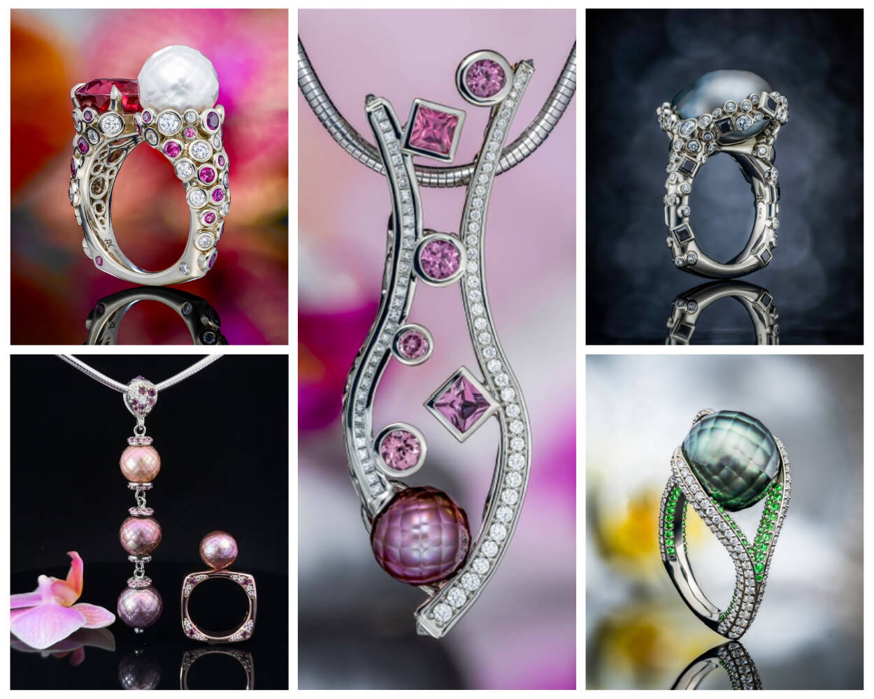 One of Robin’s more recent faceted pearl pieces (The Hageshi Cufflinks) won an AGTA Spectrum award in the WJA Diva Award for Men’s Jewelry category this year and she’s currently working on some unique submissions for the International Cultured Pearl Association competition as she continues to chase her new found love of all things pearl.