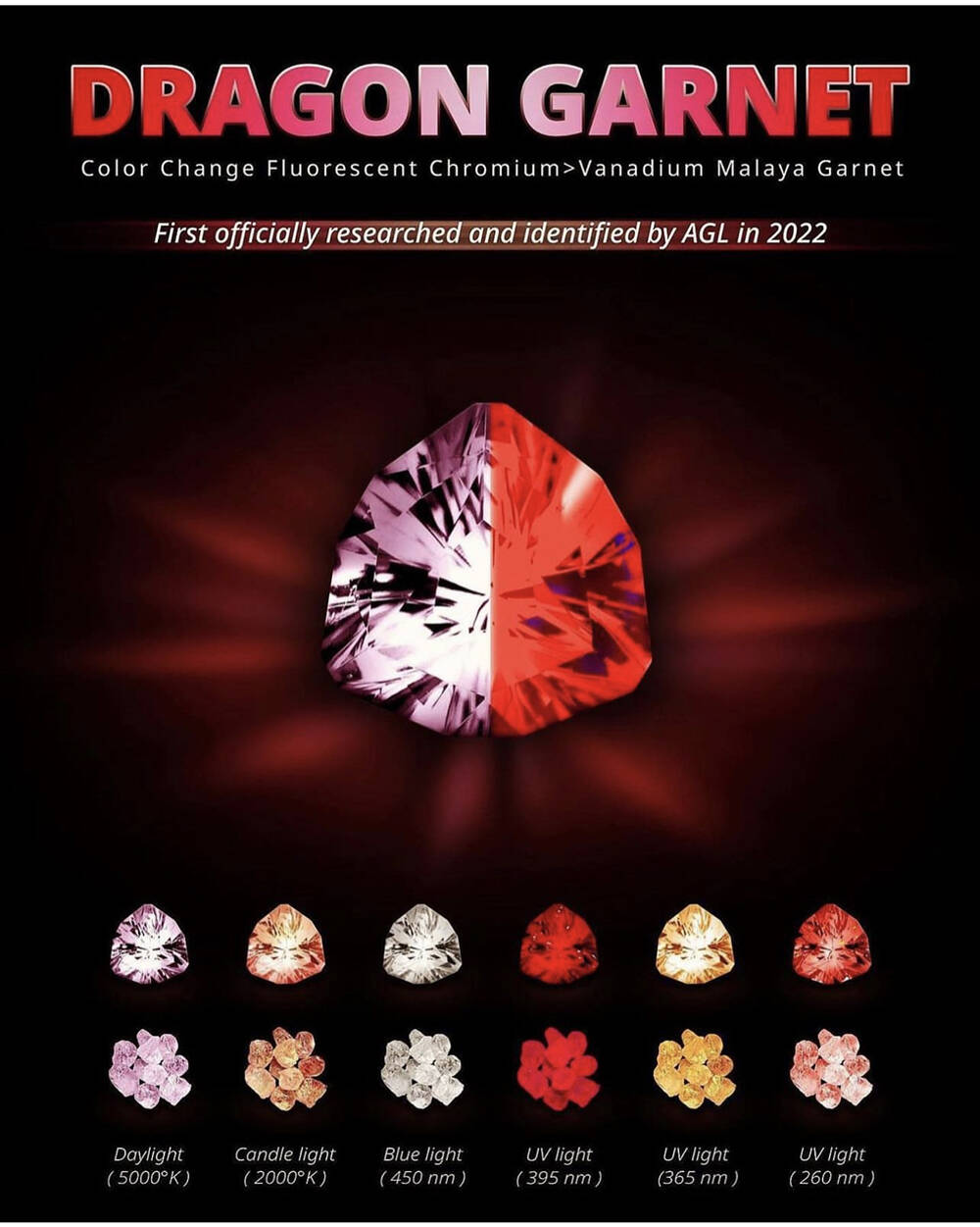 That’s right, in ultraviolet light, Dragon Garnet appears to glow.